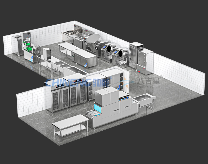 八吉星大型食堂廚房工程解決方案,專供機(jī)關(guān),學(xué)校,企業(yè),工廠,部隊(duì)等特定場所大型廚房工程,提供廚房功能區(qū)設(shè)計(jì),廚房設(shè)備配套。可根據(jù)具體場景功能需求由專業(yè)的食堂廚房工程師量身定制。